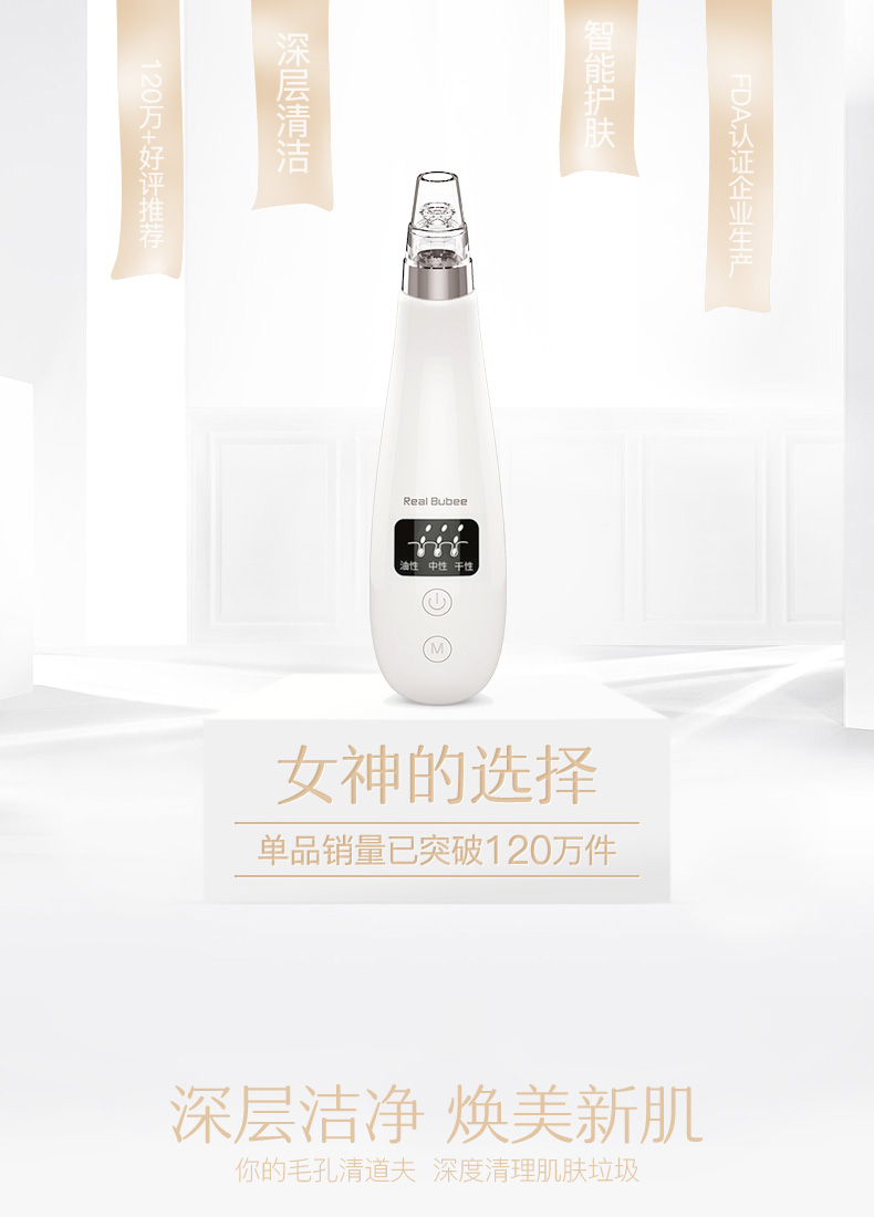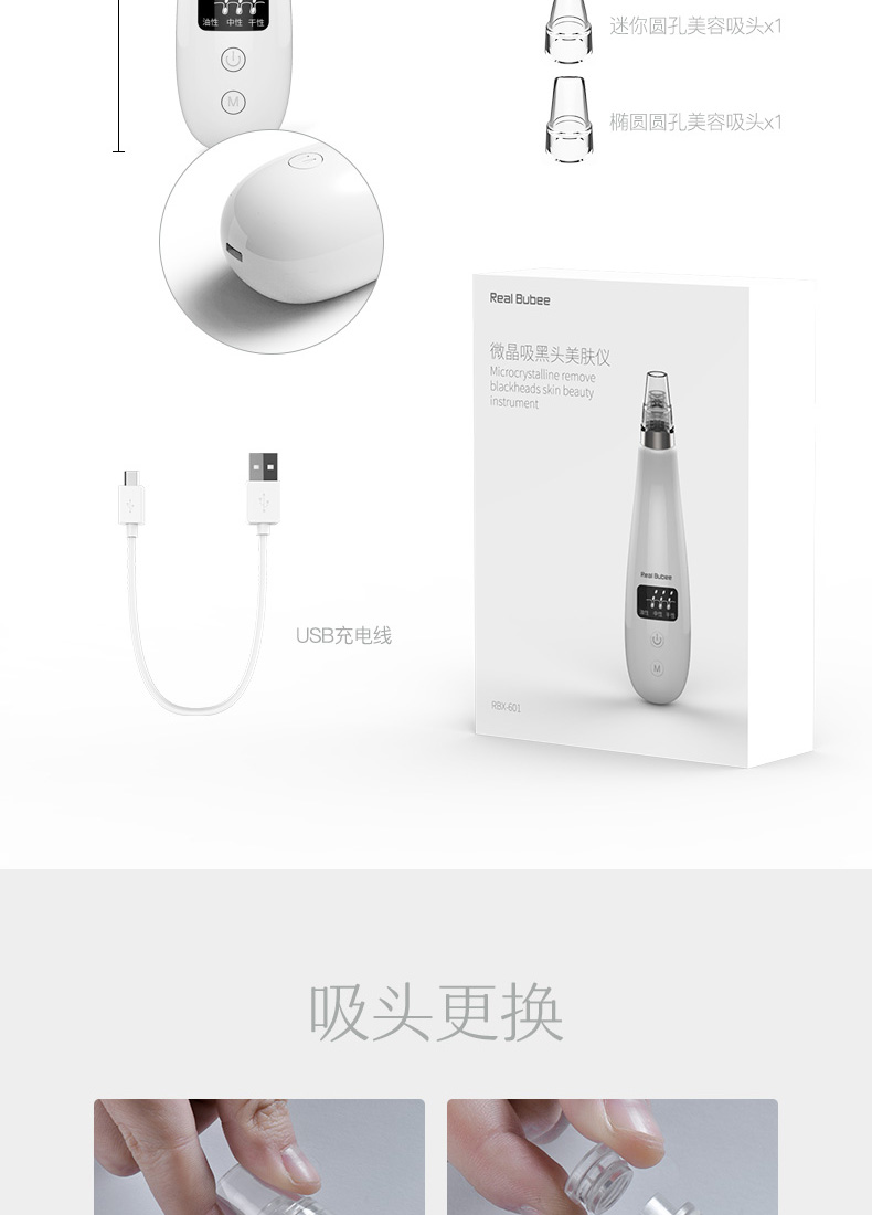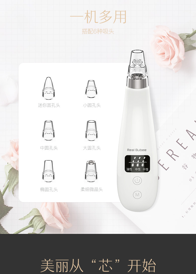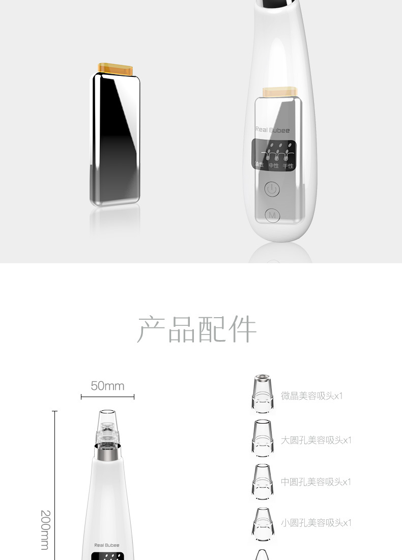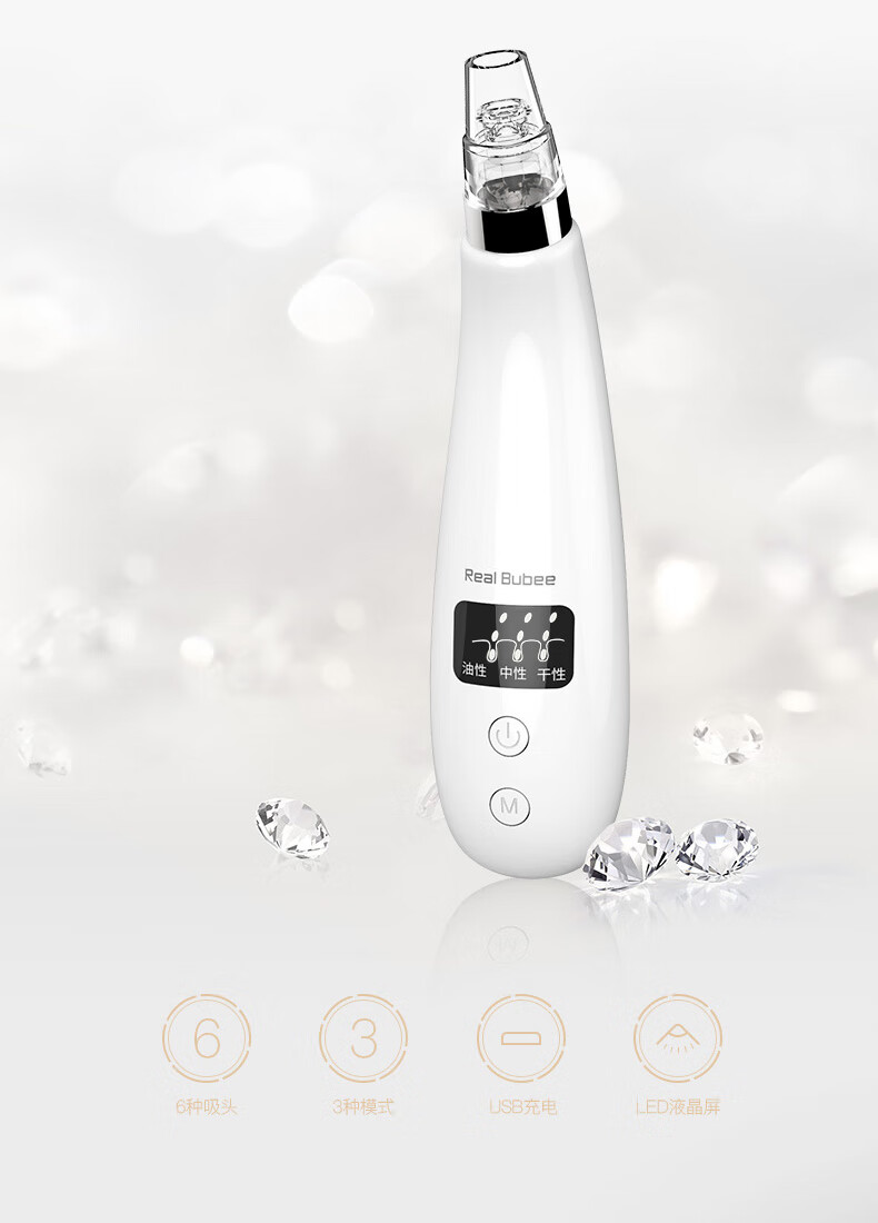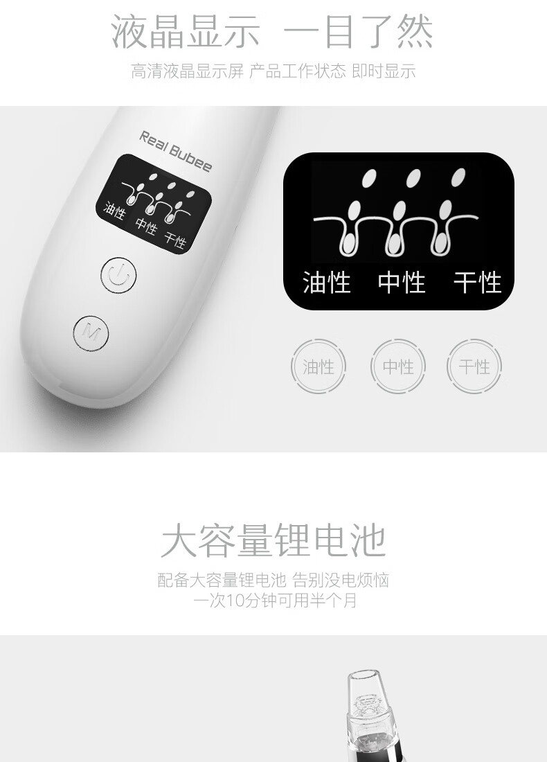 Real bubee吸黑头仪器 去黑头神器粉刺黑头吸出器电动洁面仪美容仪黑头仪电动吸黑头清洁仪美容仪 白色 微晶吸黑头仪器
