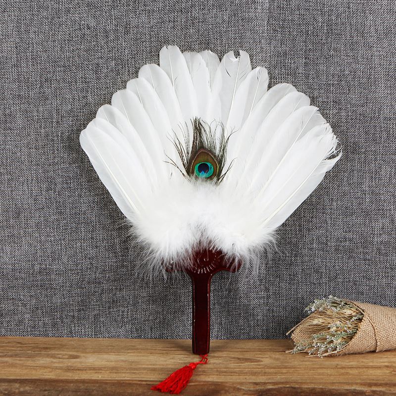 羽毛扇老式演出手柄白色白羽羽扇诸葛亮工艺日用孔明蒲扇中国风 牛角鹰毛孔明扇